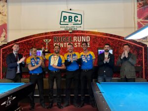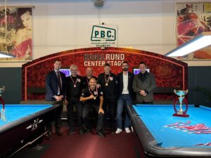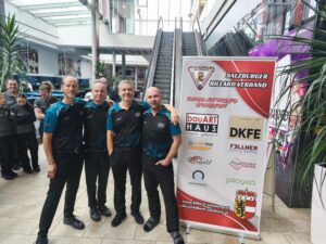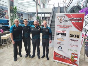 Gratulation von Seiten des Vereins dem neuen Meister 1. UBV St. Johann/Pongau, dem zweitplatzierten Pool-Team Thalgau und dem drittplatzierten 1. PBC Salzburg-Wals 2.