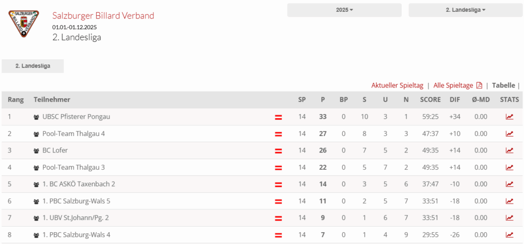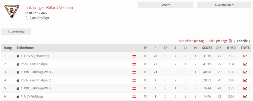 Pool-Team Thalgau 2 2:4 1. PBC Salzburg-Wals 3