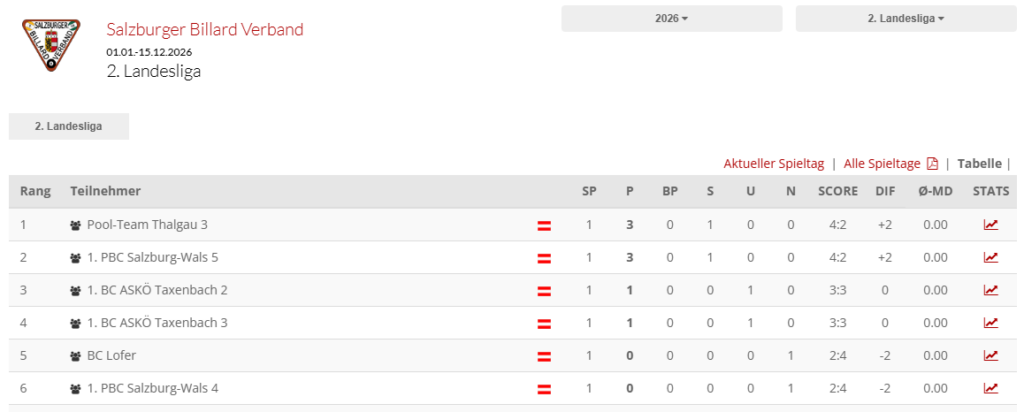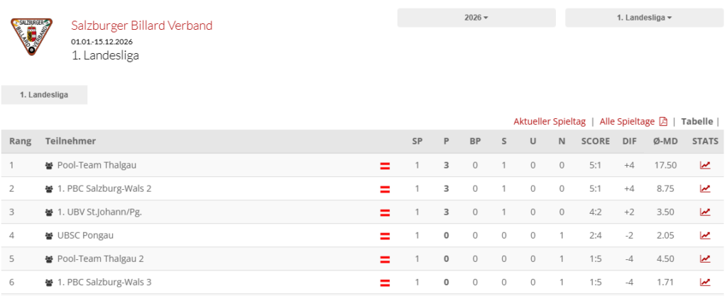 Nach einer zweimonatigen Pause begann die neue Ligasaison in den Salzburger Landesligen. Am diesjährigen Salzburger Ligabetrieb nehmen vier Mannschaften des 1. PBC Salzburg-Wals teil. Wie gewohnt startete die Saison mit vereinsinternen Duellen in der ersten beziehungsweise zweiten Landesliga.